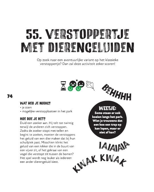 Elke haar zoontjes zijn door hun speelse uitstapjes echte buitenkinderen geworden. Toch probeert ze bewust de woorden ‘we gaan wandelen’ te vermijden. ‘Zeg nu zelf, “we gaan op speurtocht” klinkt toch veel avontuurlijker? En een wandeling wordt ook gewoon leuker als de kinderen onderweg naar dingen moeten speuren.